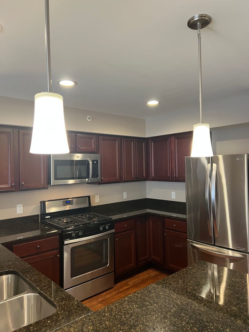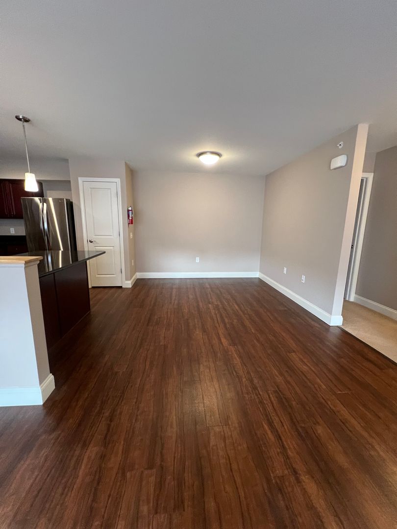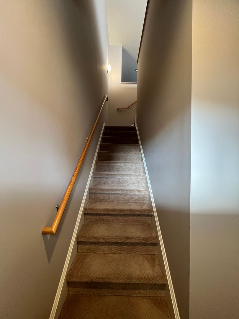 The kitchen is designed for both style and function with espresso-stained cabinetry, granite countertops, and stainless-steel appliances. Flowing seamlessly into the dining and living areas, the space is filled with natural light, while a hallway provides privacy to the two bedrooms and baths. The primary bedroom includes a private balcony, the perfect spot to relax outdoors. Vinyl plank flooring throughout the kitchen, dining and living room. Carpet can be found on the stairs, hallway and bedrooms.